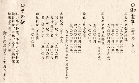 ※ 料理内容、ご予算、相談に応じます。